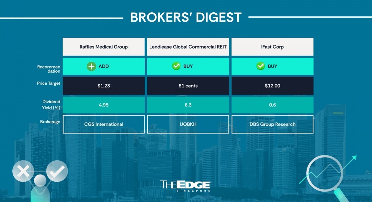 Broker's Digest: Raffles Medical Group, iFast, Lendlease REIT