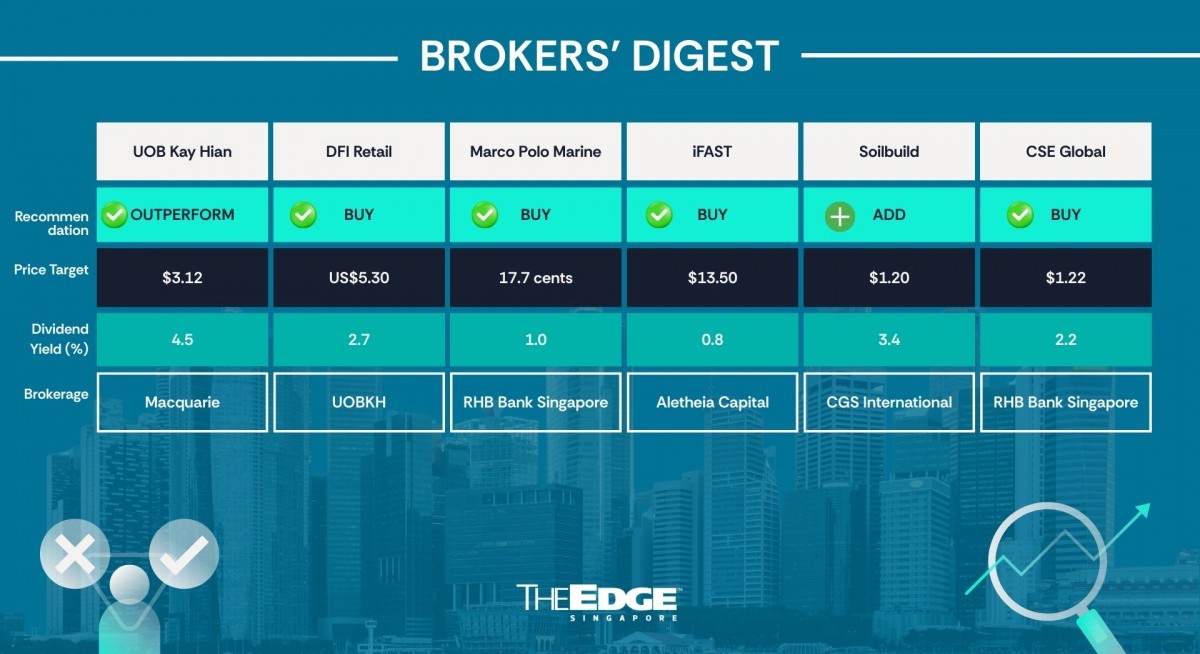Brokers' Digest: DFI Retail, Marco Polo Marine, iFast, Soilbuild, CSE Global