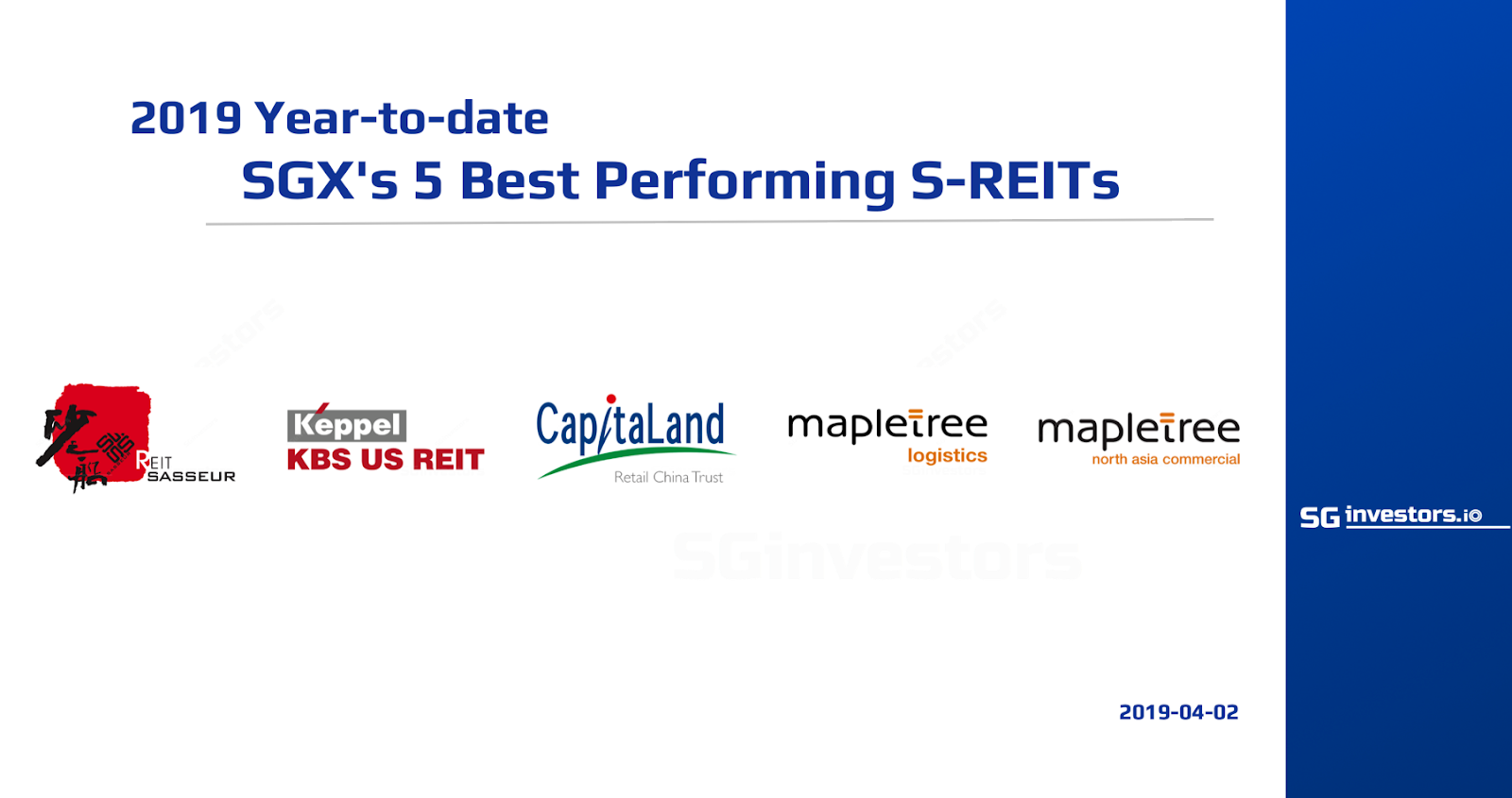 SGX 5 Best-Performing S-REITs Average 20% Total Return in 2019 YTD